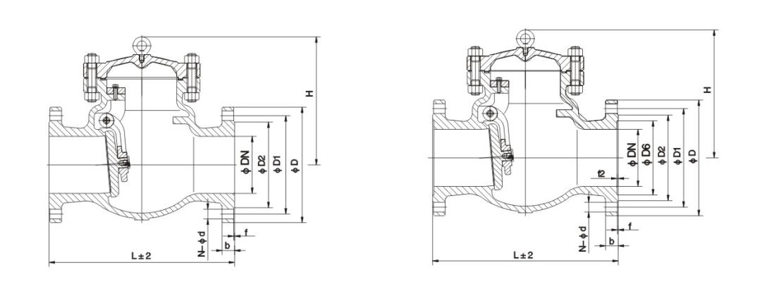 1. Abertura e fechamento automáticos: A válvula de retenção oscilante abre e fecha automaticamente com base na força do fluxo de mídia. Quando a mídia flui na direção especificada, o disco da válvula é aberto e a válvula abre. Quando a mídia para de fluir ou reflui, o disco da válvula fecha sob seu próprio peso ou força da mola, evitando o refluxo. Nenhuma operação manual é necessária, obtendo controle automático.